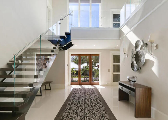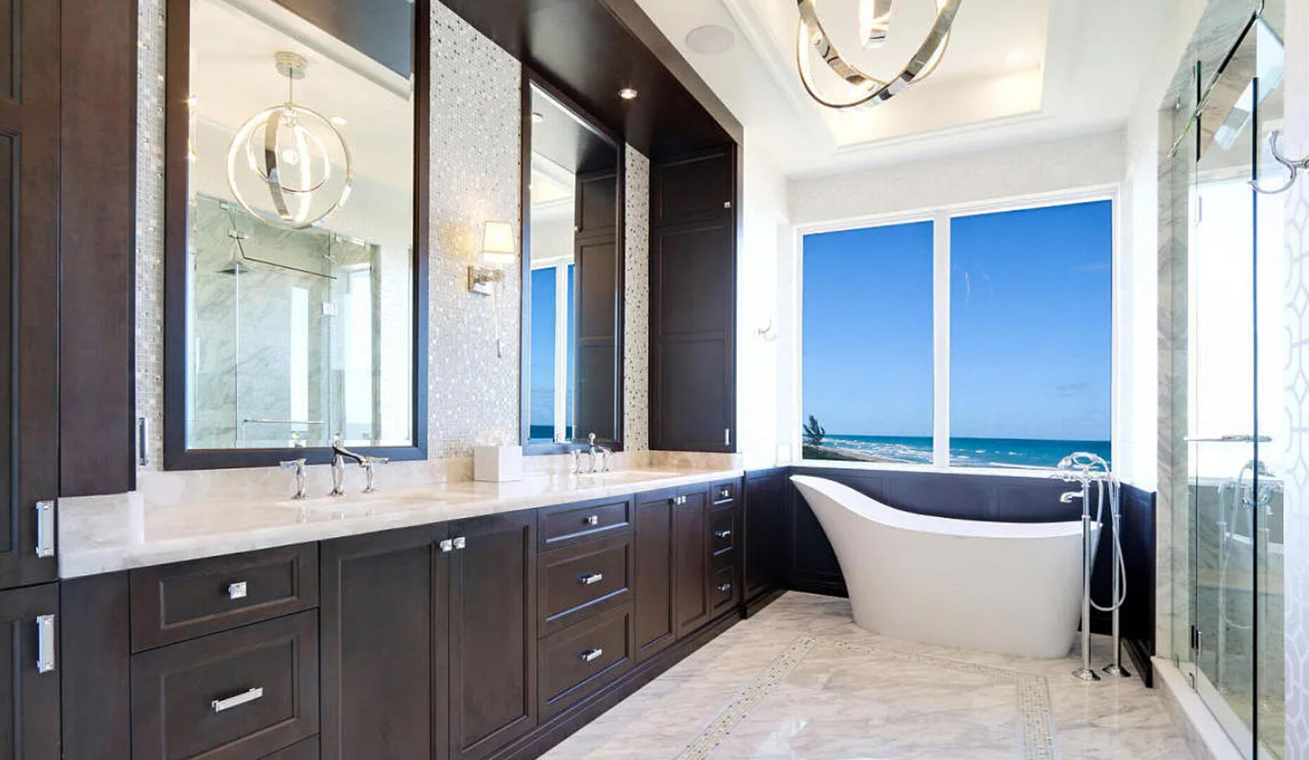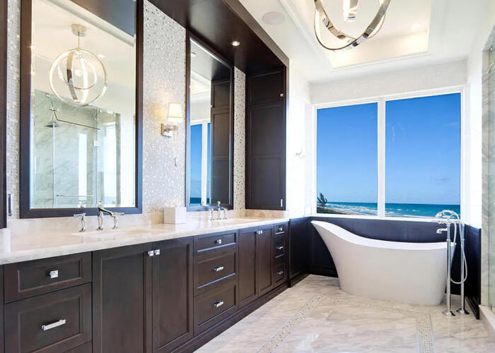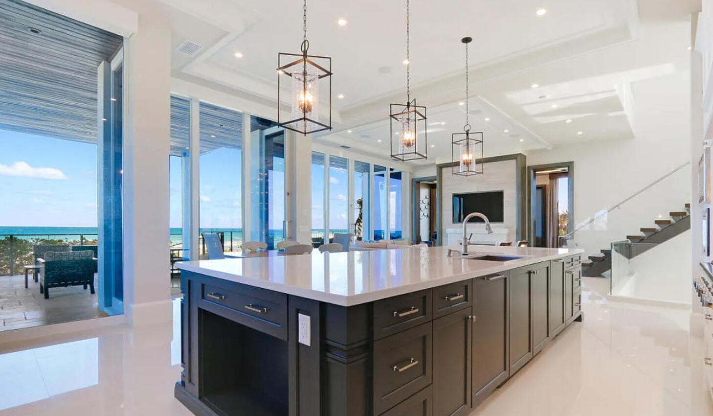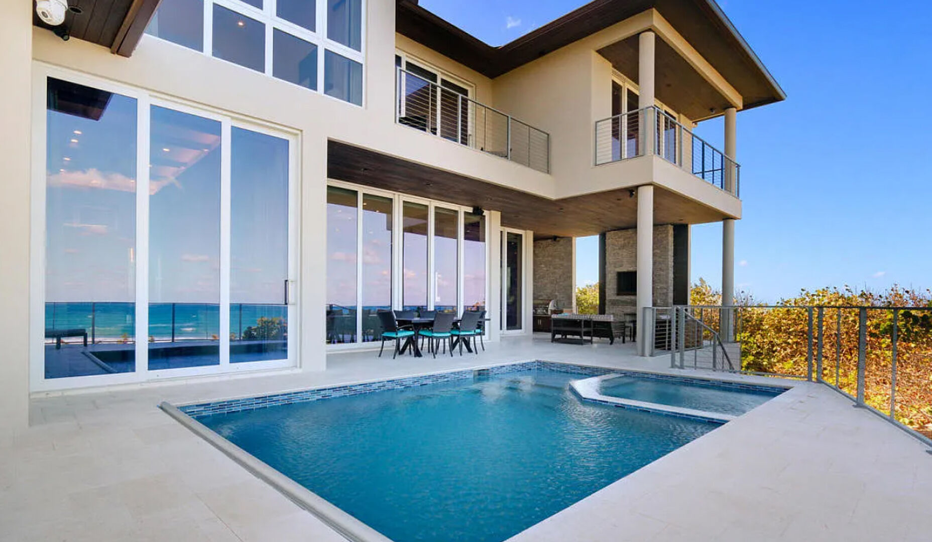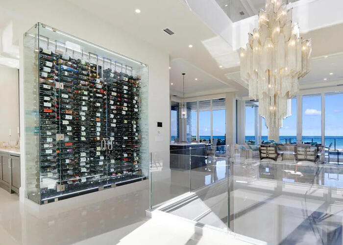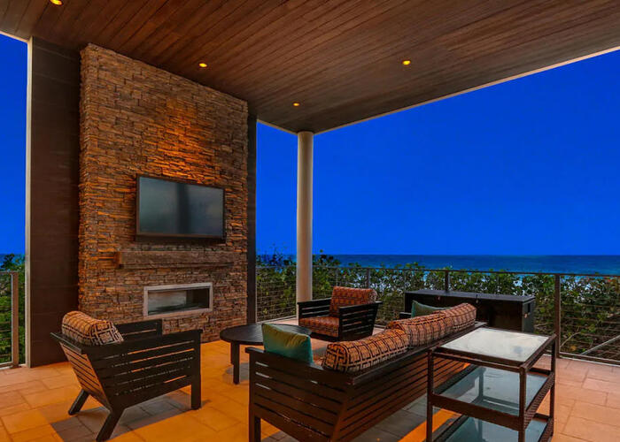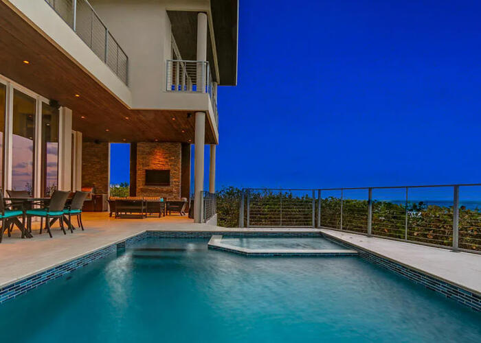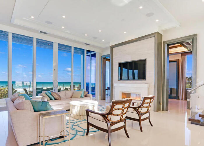 Enter the gates of Diamond Sands where this 4 bedroom 4.5 bath oceanfront home awaits. You will be captivated by the panoramic east to west views of the ocean & the Indian River Lagoon which makes this address a place of prominence & seclusion. Once inside you will experience this magnificent classic decor that meets modern design, accompanied by all you desire. Fully furnished with designer touches, a floating staircase with glass railings & 6 seat cinema room with an audio system and projector screen.
